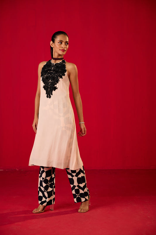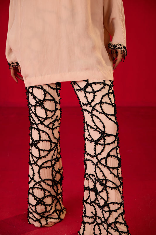 OFF WHITE CREPE TOP WITH PRINTED FULLY EMBELLISHED TROUSERS