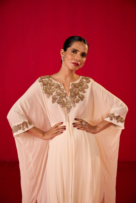 OFF WHITE CRAPE LOOSE TOP WITH STRAIGHT EMB TROUSERS