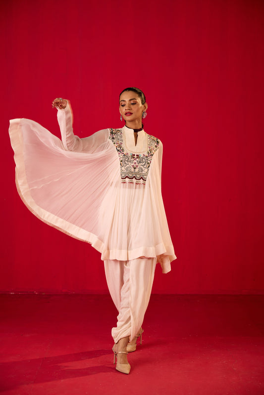 OFF WHITE LONG TOP WITH LUNGI SALWAR