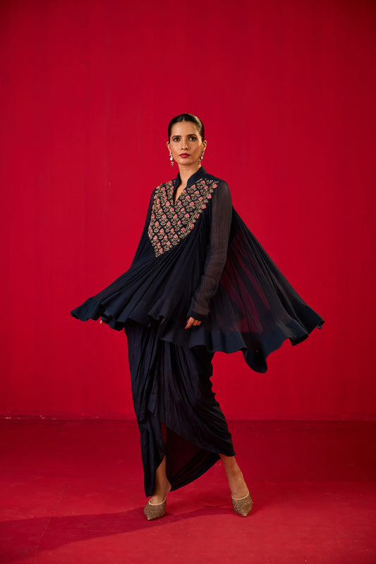 NAVY BLUE LOOSE KURTA WITH LUNGI SKIRT