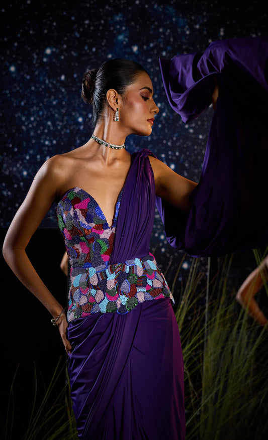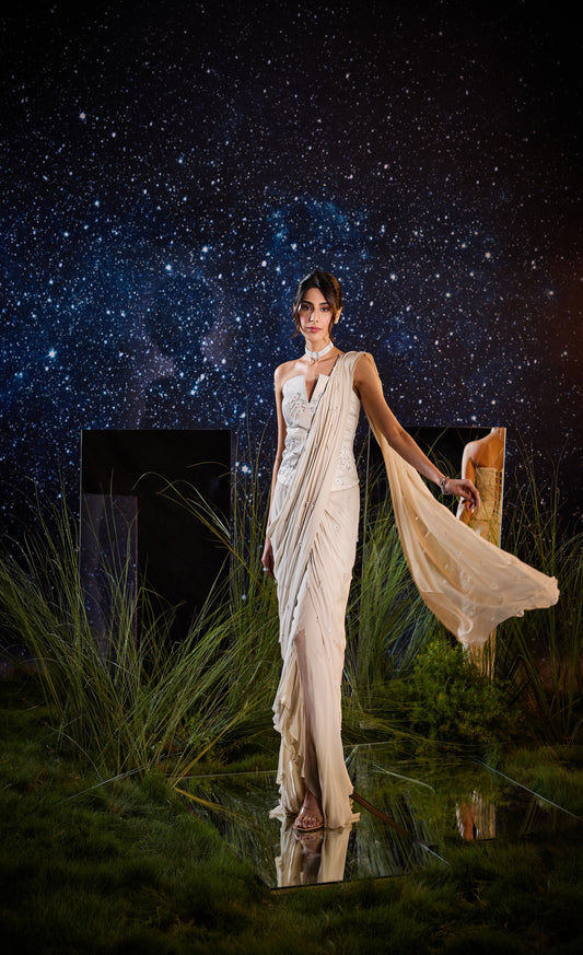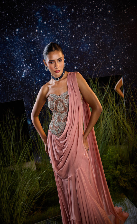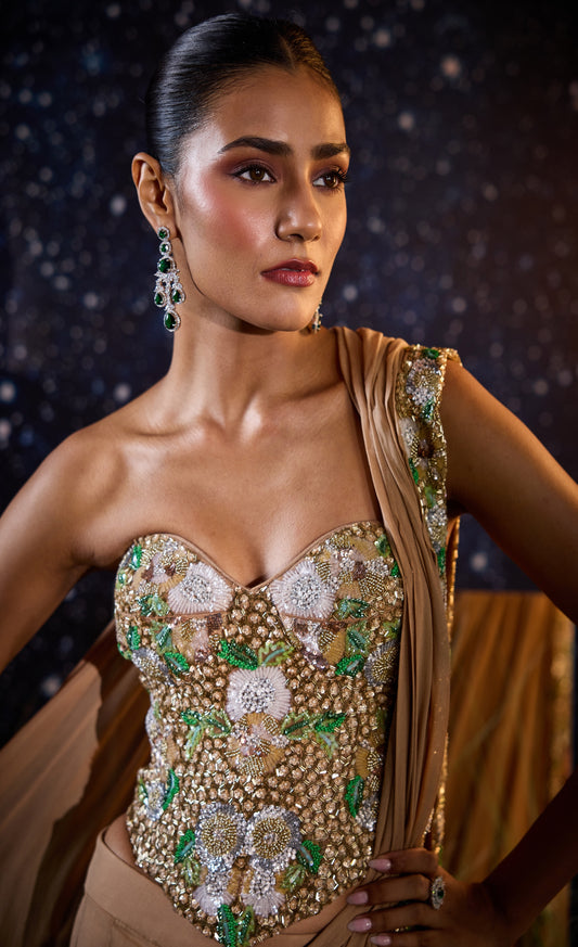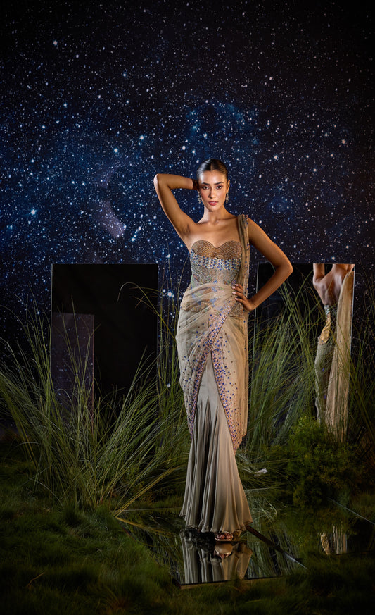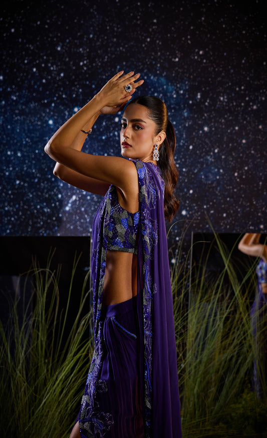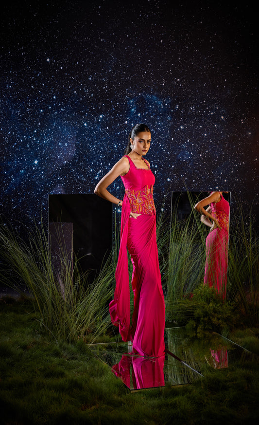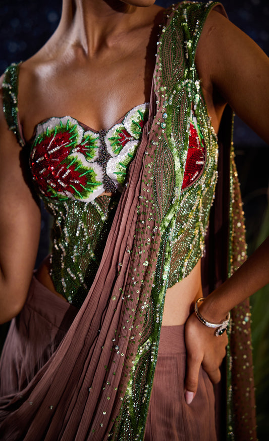 STITCHED SAREE WITH EMBROIDERED BLOUSE
